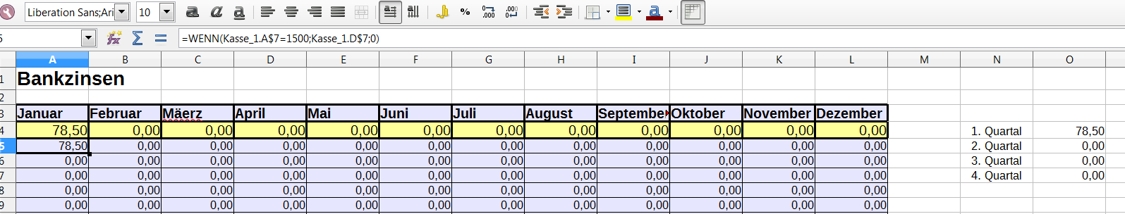Bis hierhin ist alles recht einfach und easy. Kommen wir nun zu den jeweiligen Formeln, die bereits in der Kasse von 1 – 12 integriert sind: