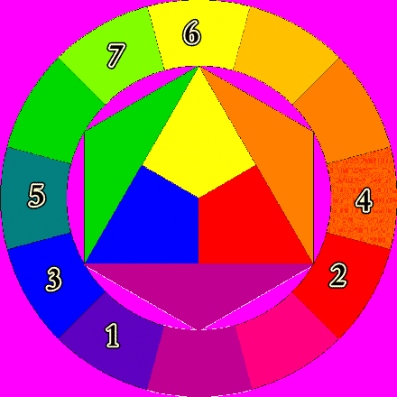 Ausgesuchte Farben von 1 - 7 für sieben Scheiben, grösste Scheibe beginnend mit "1"